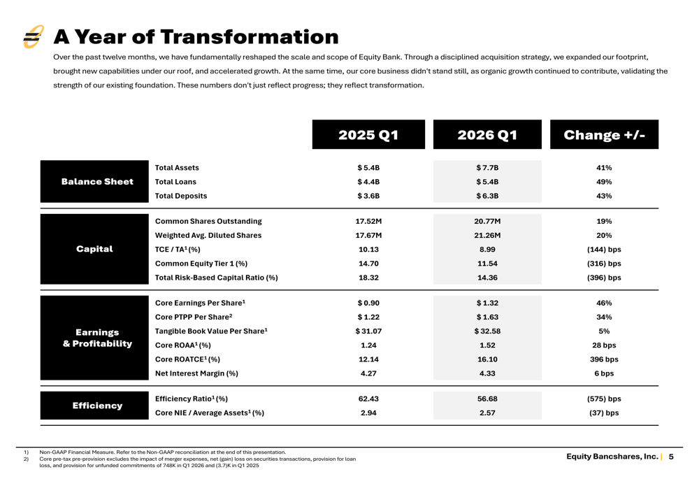 Equity Bancshares Q1 2026 slides: core earnings shine despite headline miss