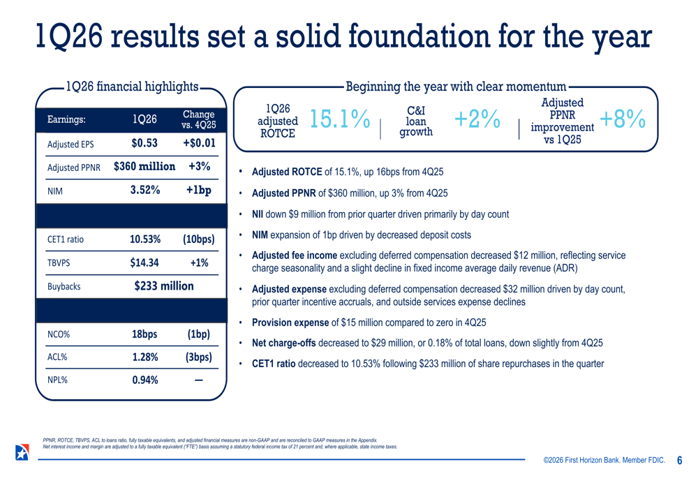 First Horizon Q1 2026 slides: profitability tops 15% for third quarter